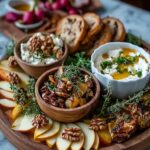 Garnish your platter with sprigs of fresh thyme or a few handfuls of peppery arugula leaves. These fresh greens don’t just add color but also a subtle herbal brightness that rounds off the dish elegantly. Serve with optional crostini or toasted baguette slices so everyone can scoop and layer their bites for a personalized tasting experience.