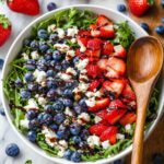Start by placing the baby arugula in a large salad bowl. The freshness and pepperiness of the arugula create a wonderful foundation for the salad. Then, gently scatter the hulled and sliced strawberries along with whole blueberries over the greens. This layering showcases the vibrant colors and ensures every bite will be balanced.