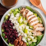 If you have leftovers from this Autumn Chopped Chicken Salad Recipe, store the salad and dressing separately in airtight containers in the refrigerator. This keeps the crispness of the lettuce and the crunch of the nuts intact, preventing sogginess from the dressing.