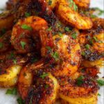 This flavorful Blackened Shrimp recipe features perfectly spiced and seared shrimp served over a bed of jasmine rice with fresh avocado, cherry tomatoes, and corn. The shrimp are coated with a smoky, slightly sweet spice blend and quickly cooked in a skillet, making it a quick and delicious meal ideal for a healthy weeknight dinner or casual gathering.