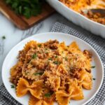 This delicious Bowtie Pasta Ziti is a comforting baked pasta dish combining tender farfalle with savory Italian sausage, rich marinara sauce, and a blend of cheeses. Perfectly baked until bubbly and golden, it’s an easy crowd-pleaser ideal for weeknight dinners or gatherings.