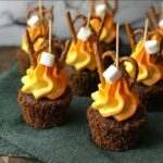 - Assemble the Campfire Elements: Insert 3-5 mini pretzel rods upright into each cupcake near the frosting to represent firewood logs. Finally, place mini marshmallows around or on top of the ‘firewood’ to mimic marshmallows roasting over the campfire.