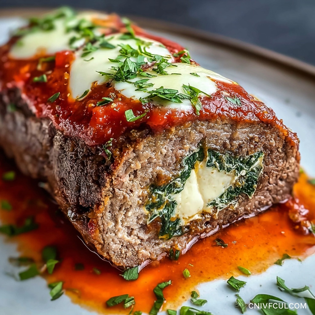 This Cheesy Stuffed Italian Meatloaf is a hearty comfort food classic elevated with a delicious gourmet twist. Featuring a moist ground beef blend filled with fresh spinach, marinara sauce, and a generous amount of mozzarella cheese, this recipe promises rich flavor and satisfying texture. Perfect for a family dinner, it combines Italian seasonings and Parmesan for a perfect savory bite.