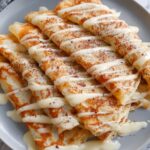 - Assemble: Spread the cinnamon filling evenly over each crepe. Roll the crepes carefully to encase the filling. Drizzle the cream cheese topping generously over the rolled crepes. Serve immediately and enjoy.