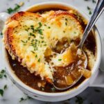 This Classic French Onion Soup with Caramelized Onions and Melty Cheese Recipe is the kind of comforting dish that feels like a warm embrace on a chilly day. It does take patience, especially with caramelizing the onions, but every minute spent is worth the reward of that deep, rich flavor and ooey-gooey cheese topping. I promise once you try this recipe, it will become a cherished classic in your own kitchen, perfect to share with loved ones or to savor on a cozy solo night in.