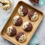 - Form the brookies: Use a cookie scoop to take one scoop of brownie dough and one scoop of cookie dough. Roll them together gently and press them down slightly so that half of the cookie dough and half of the brownie dough are visible. Place each formed brookie on a parchment-lined baking sheet.