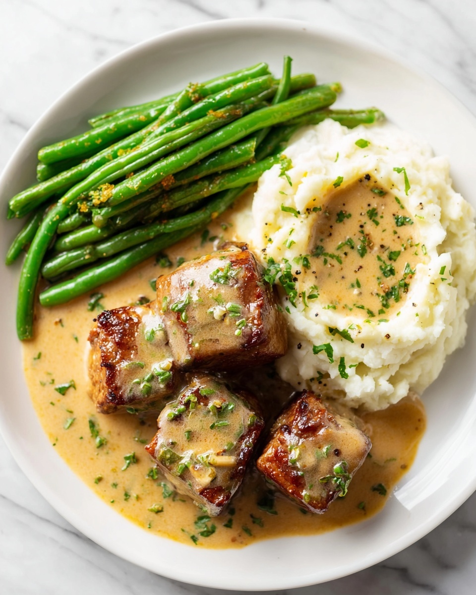 For an impressive presentation, plate the pork medallions in a circle with the creamy sauce artfully drizzled over and around them. A scattering of toasted pine nuts or slivered almonds adds crunch and visual appeal. Alternatively, serve over a bed of garlic-infused buttered noodles for an irresistible comfort plate.