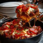 If you’re craving all the heavenly flavors of your favorite pizza combined with the layered goodness of lasagna, then you are absolutely going to love this Easy Pizza Lasagna Skillet Bake Recipe. Imagine saucy marinara mingling with ground beef, melted mozzarella, and spicy pepperoni all cooked in one skillet, making cleanup a breeze and dinner time a joy. This dish is a perfect crowd-pleaser that brings comforting warmth, cheesy delight, and an irresistible aroma to your table in just about 35 minutes. It’s the kind of recipe you’ll want to share with your favorite people again and again.