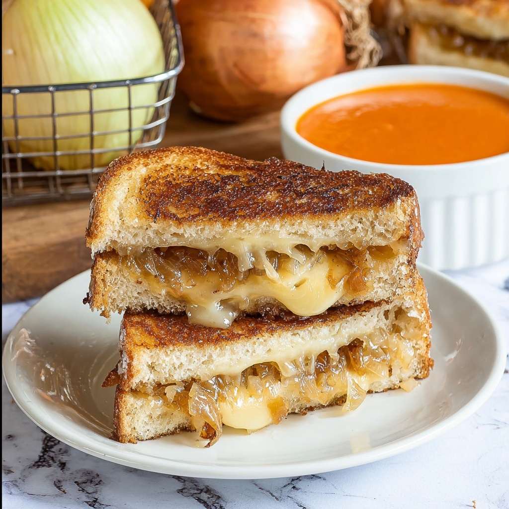 A decadent French Onion Grilled Cheese sandwich combines caramelized onions cooked with herbs and wine, layered with melted Gruyere and white cheddar cheeses, then grilled to golden perfection on thick sliced bread with a buttery crust. This recipe transforms classic grilled cheese with the rich, savory flavors of homemade onion jam and Parmesan, perfect for a comforting meal or gourmet lunch.