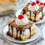 - Serve: Cut into 12 servings and serve with optional toppings of chocolate syrup, whipped topping, and cherries for extra flavor and decoration.