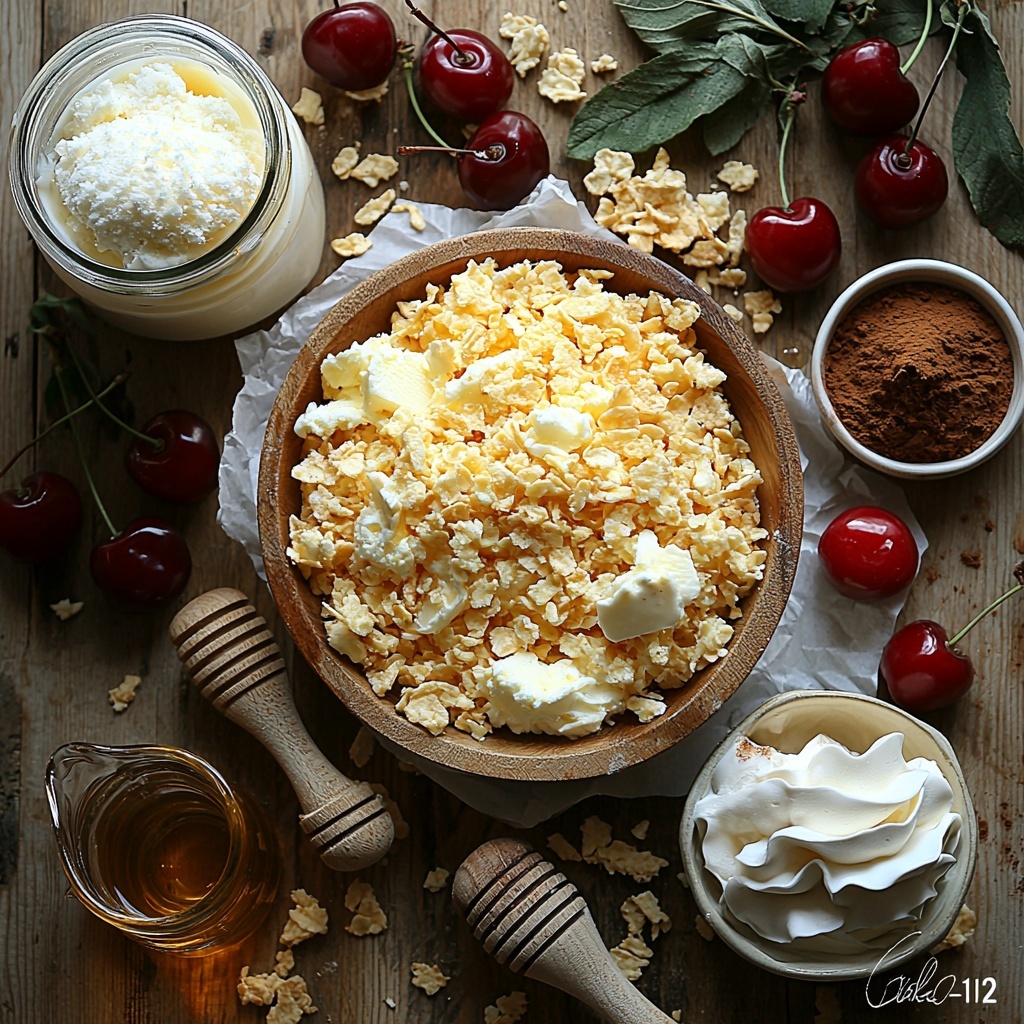 The magic of this Fried Ice Cream Cake Recipe lies in its straightforward, pantry-friendly ingredients that come together to create an irresistible combination of textures and flavors. Each ingredient plays a vital role from the crunch of cornflakes to the smooth sweetness of the ice cream and honey glaze.