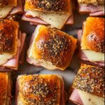 These Garlic Herb Hot Ham Sliders are a deliciously savory appetizer or snack featuring soft dinner rolls layered with savory deli ham and a blend of melty and sharp cheeses. Brushed with a flavorful garlic herb butter and sprinkled with poppy seeds and Italian seasoning, these sliders are baked to golden perfection with bubbly cheese inside. Perfect for gatherings, game days, or cozy nights in, they come together quickly and satisfy cravings with their irresistible combination of flavors and textures.