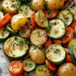 Place your tray in the oven and roast for about 30-35 minutes. Halfway through, give the vegetables a gentle stir to ensure even cooking and browning. You’ll know it’s ready when the potatoes are soft inside, carrots have a slight caramelized sweetness, and zucchini is tender but not mushy.