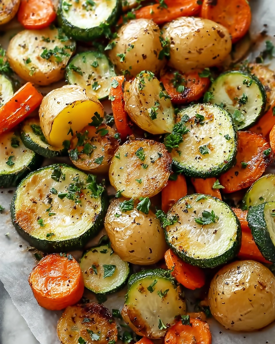 Garlic Herb Roasted Potatoes, Carrots, and Zucchini Recipe