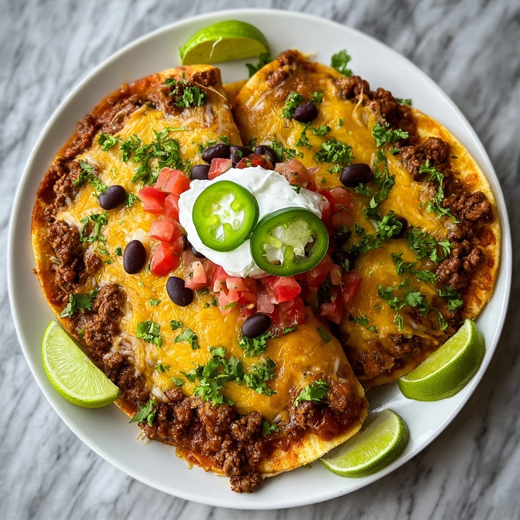 Fresh cilantro scattered on top brightens the dish with its herbaceous notes, while sliced jalapeños add a fresh, spicy bite if you like heat. A dollop of cool sour cream balances the spices and adds a creamy texture, and a squeeze of lime juice over the top lifts all the flavors with a refreshing zing.