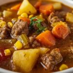 This Hearty Crockpot Cowboy Soup is a comforting and flavorful American classic, perfect for cold days. Packed with ground beef, vegetables, beans, and potatoes, it simmers slowly to create a rich and satisfying stew that is easy to prepare and great for leftovers or freezing.