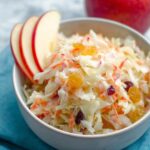 - Prepare the Vegetables: Wash and remove the outer leaves of the cabbages. Core and finely shred the cabbage. Peel and grate the carrots. Finely dice the small purple onion and dice the apple.