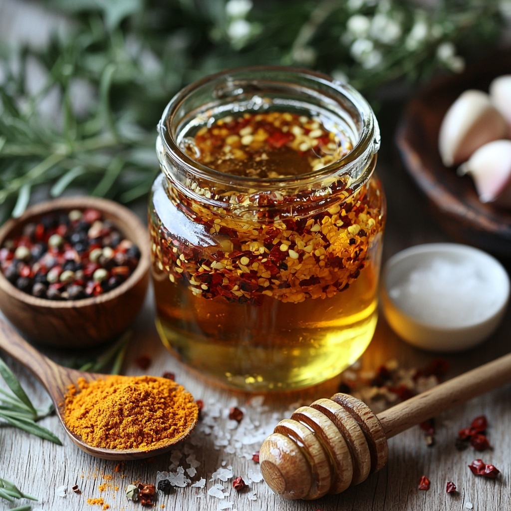 A quick and flavorful Hot Honey recipe that combines the natural sweetness of honey with a spicy kick from red pepper flakes, balanced by apple cider vinegar and a hint of garlic. Perfect for drizzling over pizza, fried chicken, or roasted vegetables, this versatile condiment is easy to make in just 10 minutes.