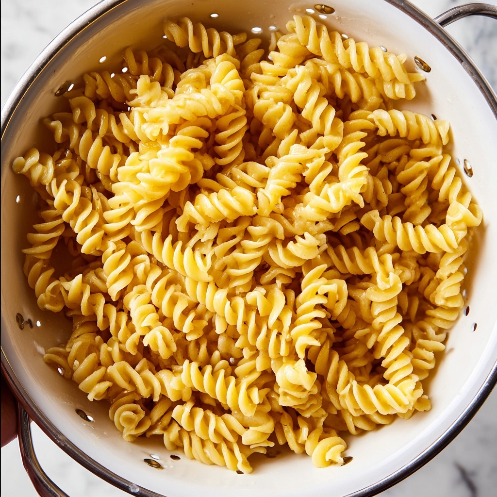 Drain the pasta well. If you’re serving it hot with a sauce, no need to rinse. But for cold dishes like pasta salads, rinse the pasta immediately under cold water for a minute or two to stop the cooking process and cool it thoroughly.