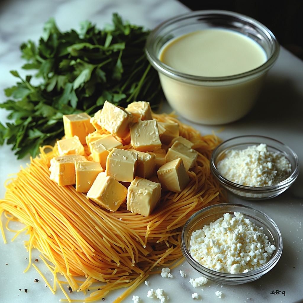 - 8 ounces Spaghetti: The perfect base to carry all that creamy, cheesy goodness in every bite.