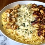 This indulgent creamy Velveeta chicken spaghetti with mozzarella sauce is a rich and comforting dish that combines tender cooked chicken, gooey Velveeta cheese, and melted mozzarella in a luscious creamy sauce served over perfectly cooked spaghetti. Ready in just 30 minutes, it’s a deliciously cheesy meal perfect for family dinners or when craving a hearty pasta dish.