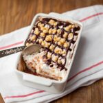 - Add Caramel Sauce: Pour the caramel sauce over the chocolate ice cream, leaving a small rim around the edges to prevent dripping.