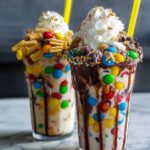 This M&M Cookie Frappuccino recipe is a deliciously sweet and creamy blended drink that combines milk, vanilla ice cream, chocolate syrup, and crushed M&M’s with crumbled chocolate chip cookies. Topped with whipped cream and extra M&M’s, it’s a perfect indulgent treat inspired by popular coffeehouse frappuccinos, ideal for satisfying your sweet tooth with a fun twist.