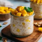 This Mango Lassi Overnight Oats recipe is a refreshing and healthy breakfast inspired by the classic Indian mango lassi drink. Combining creamy Greek yogurt, ripe mango, and warm cardamom spice, these no-cook oats soak overnight to create a deliciously smooth and flavorful morning meal. Perfect for make-ahead preparation, it’s topped with crunchy pistachios for added texture and can be easily adapted to vegan diets using plant-based yogurt and sweeteners.