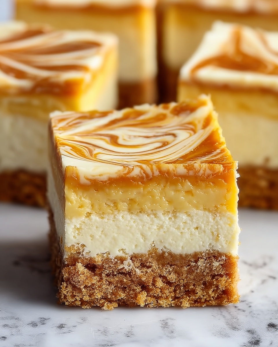 These Pumpkin Cheesecake Bars offer a deliciously creamy and spiced dessert perfect for fall or any time you crave a comforting treat. A buttery graham cracker crust supports a luscious marbled cheesecake filling, combining classic pumpkin pie flavors with rich cream cheese. Baked to perfection and chilled overnight, these bars provide a smooth texture with a beautiful swirl that’s sure to impress at gatherings or as an indulgent snack.
