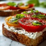 To elevate your Ricotta & Tomato Sourdough Toast Recipe for guests, consider cutting the toasts into smaller bite-sized pieces for a charming appetizer platter. Layering a few slices on a wooden board with extra bowls of ricotta, marinated tomatoes, and fresh herbs also makes for a fun, shareable presentation.