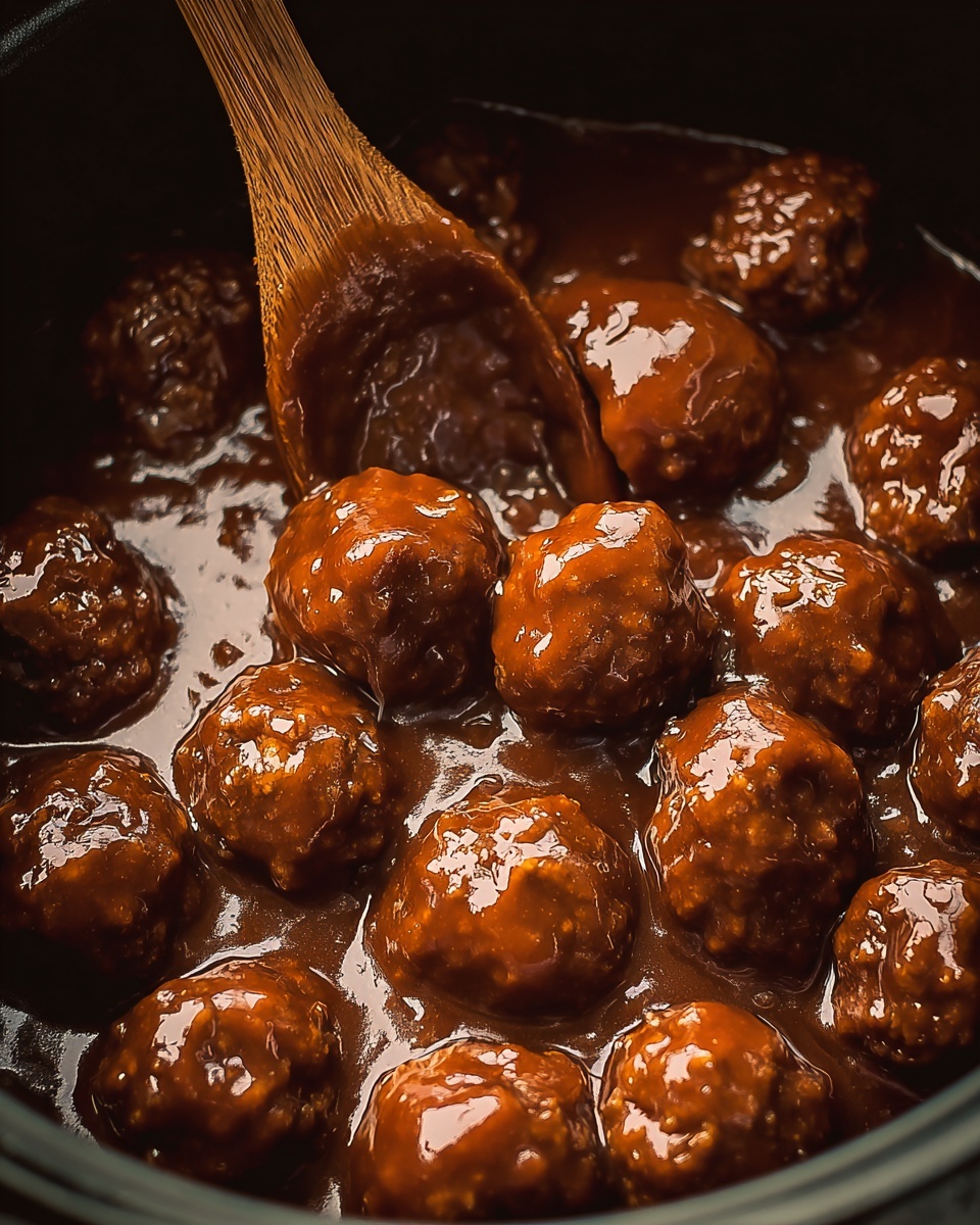 The gravy should be thick enough to coat the back of a spoon and cling nicely to the meatballs, but still pourable. The cornstarch slurry allows you to adjust thickness perfectly at the end of cooking.