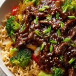 Start by cooking your noodles according to the package instructions until tender but still slightly firm. Drain them well and set aside because they’ll add wonderful chewiness that complements the beef and sauce perfectly.