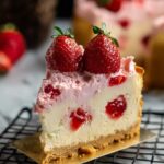 This Strawberry Mousse Cake is a delightful no-bake dessert featuring a crisp graham cracker crust topped with a luscious, airy strawberry mousse. The mousse is made from fresh strawberries cooked into a smooth puree, combined with whipped cream and a touch of gelatin for the perfect set. It’s an elegant, light, and fruity treat ideal for summer or any special occasion.