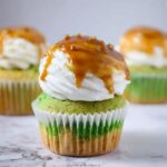 These Best Caramel Apple Cupcakes combine a moist, green-tinted apple-flavored cake with rich buttery cream cheese frosting, topped with caramel-dipped apple tops for a festive and delicious treat perfect for fall or any celebration.