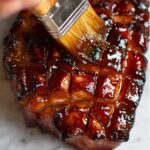 - Apply the Glaze: Mix your chosen glaze ingredients thoroughly. Brush the glaze generously over the entire surface of the ham. Optionally, secure pineapple slices or cherries with toothpicks on the surface for decoration and additional flavor.
