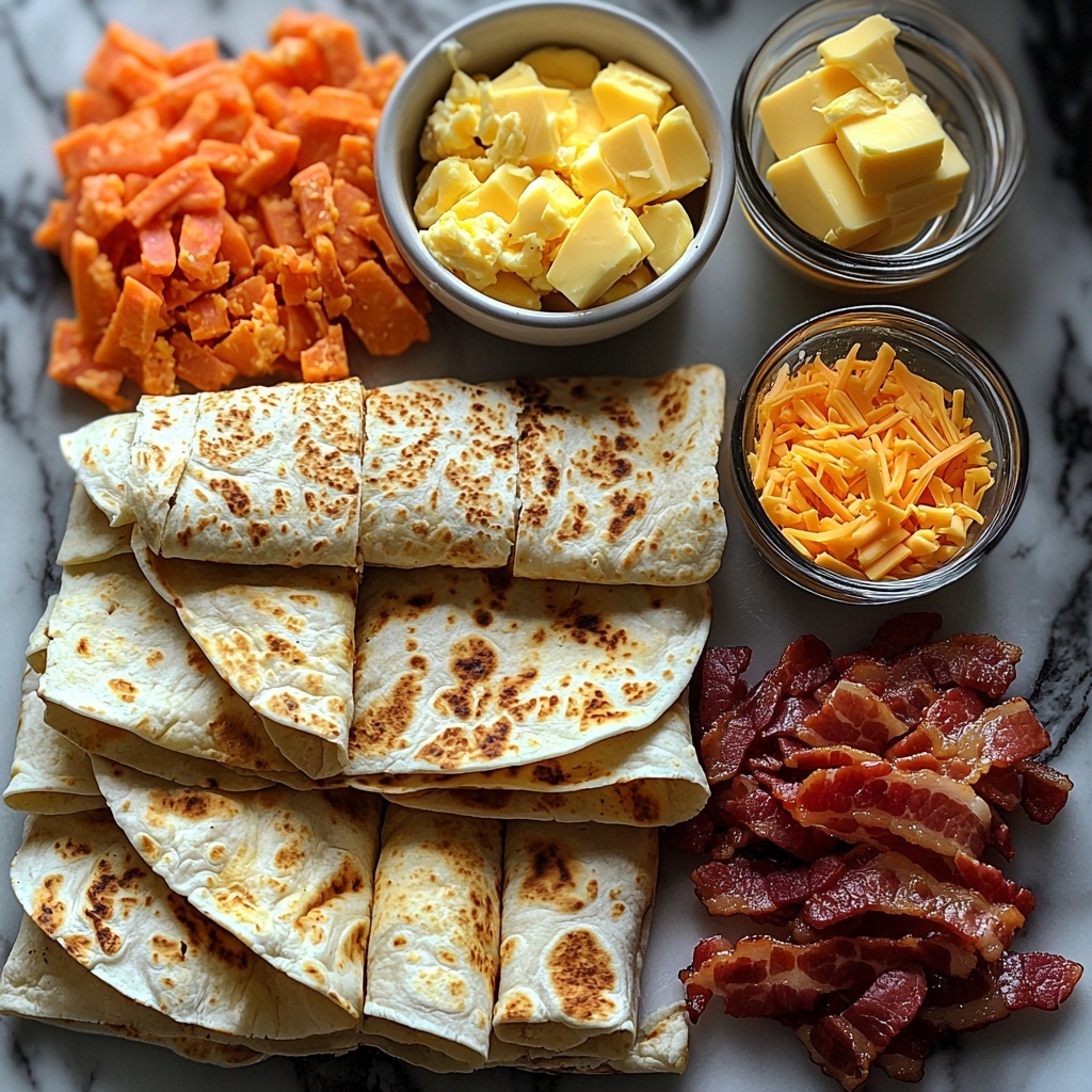 The beauty of this recipe lies in its simplicity and the quality of each ingredient. Every element plays a crucial role, adding layers of flavor, texture, and that irresistible melty cheese stretch. Gather these essentials to create your very own Tik Tok Famous Breakfast Quesadillas Recipe at home.