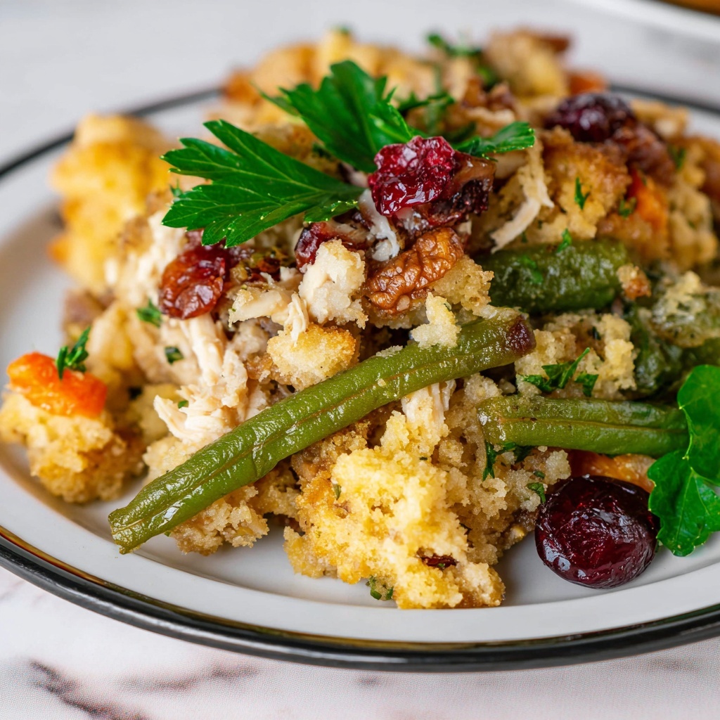 Let your Turkey Stuffing Casserole Recipe rest for 5 minutes before serving. This short wait allows the flavors to settle and makes slicing or scooping easier, ensuring that every plate looks as inviting as it tastes.