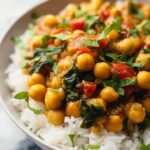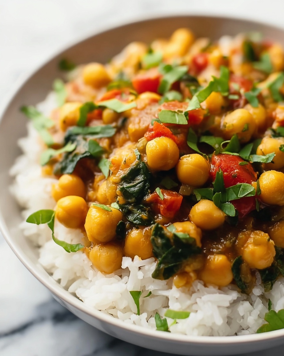 A flavorful and hearty vegan chickpea curry made with aromatic spices, coconut milk, and tomatoes, perfect for a satisfying plant-based dinner. This Indian-inspired dish is gluten-free and packed with protein and fiber, making it a nutritious and delicious meal.