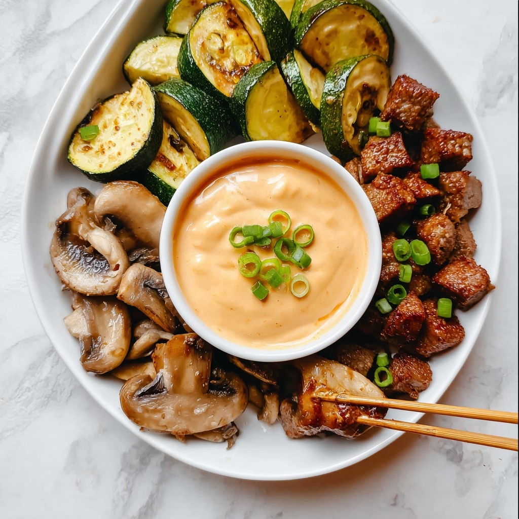 A creamy, tangy, and slightly sweet Japanese-style Yum Yum Sauce that pairs perfectly with grilled meats, seafood, vegetables, or as a dipping sauce. This easy-to-make sauce combines mayonnaise, ketchup, rice vinegar, and warm spices for a delightful complement to your favorite dishes.